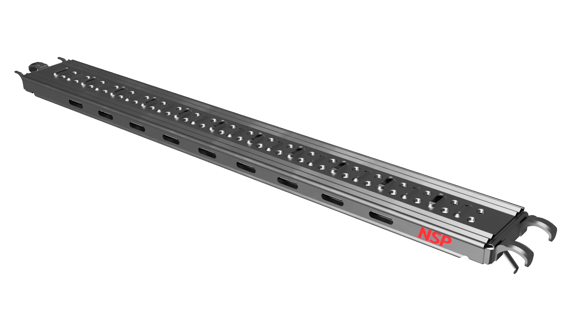 This European-style steel deck is a durable plank designed for use in both public stair systems and standard ringlock scaffolding applications. Manufactured in a 1.57 m (5′-2″) length, it is available in two widths – 0.32 m and 0.19 m – to suit different access and decking configurations…